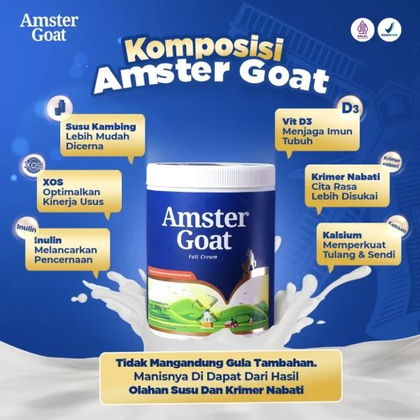 Amster Goat adalah susu kambing premium yang diolah dengan teknologi modern. Setiap sachetnya dikemas higienis dalam botol praktis, jadi kamu bisa menikmatinya kapan aja tanpa ribet.
